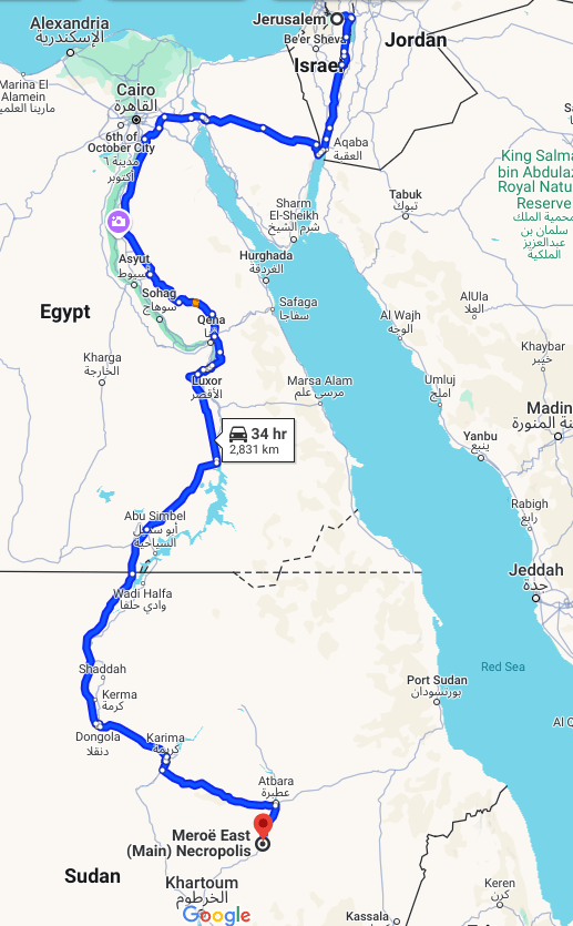 2. This is a Google Maps map, and so this is not (probably) the route that the person took. But it does give us a sense of the distance they traveled. BYW Google maps estimates this is a 25 day walk. It doesn’t tell us about chariot travel times. ↩︎