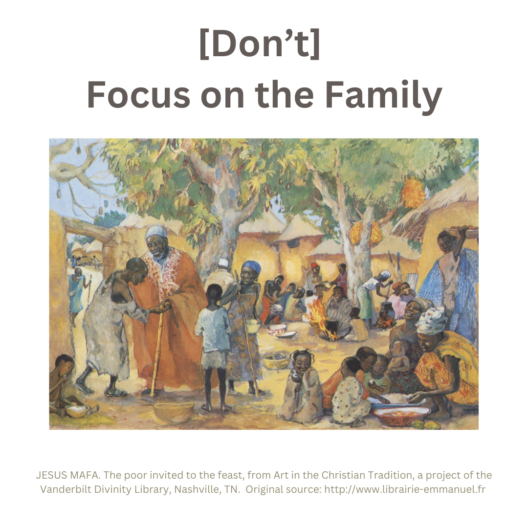 Throughout our society, we see and hear about the importance of “the family”. I’m not going to argue that families are not important, of course they are. But from a Christian perspective, some of us come dangerously close to idolizing “the family”. Heterosexual marriage and children become the main goal of a Christian life, especially for women. The problem for us is, that Jesus doesn’t talk about the family as a goal of life, let alone call it the most important institution.
