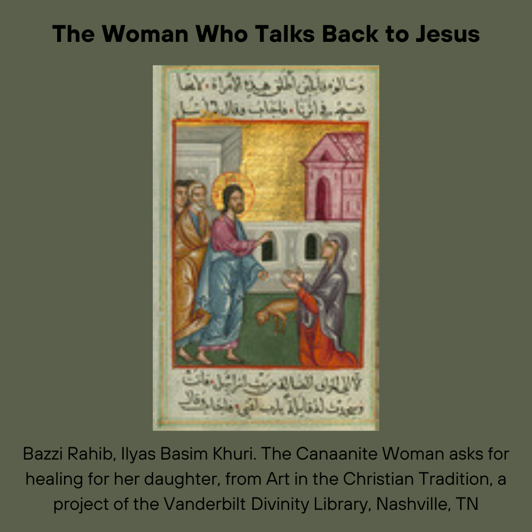 “From there he set out and went away to the region of Tyre. He entered a house and did not want anyone to know he was there. Yet he could not escape notice, but a woman whose little daughter had an unclean spirit immediately heard about him, and she came and bowed down at his feet. Now the woman was a gentile, of Syrophoenician origin. She begged him to cast the demon out of her daughter. He said to her, “Let the children be fed first, for it is not fair to take the children’s food and throw it to the dogs.” But she answered him, “Sir, even the dogs under the table eat the children’s crumbs.” Then he said to her, “For saying that, you may go–the demon has left your daughter,” And when she went home, she found the child lying on the bed and the demon gone. Mark 7:24-30 NRSV1