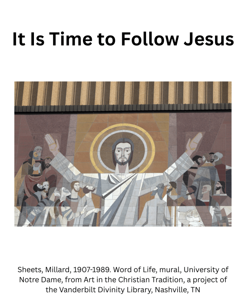 When I think about this text, I think about a small town, where people know each other. I think about a place where someone proclaiming “Repent for the kingdom of heaven has come near.” would be a topic of community conversation. I think about a place people struggled to survive because of the systems and structures of the occupying Roman Empire. I wonder if these first disciples had been talking about Jesus and his message. I wonder if they have been talking to Jesus about his message. I wonder, as a result of hearing Jesus’ proclamation, if they were ready to change the world, to help bring the kingdom of heaven to their homeland. If they were ready to deliberately and knowingly make the sacrifices necessary to follow Jesus. Then one day, it’s time. It’s time to begin. It’s time to go. “Follow me, and I will make you fisher of people.” And so they follow.